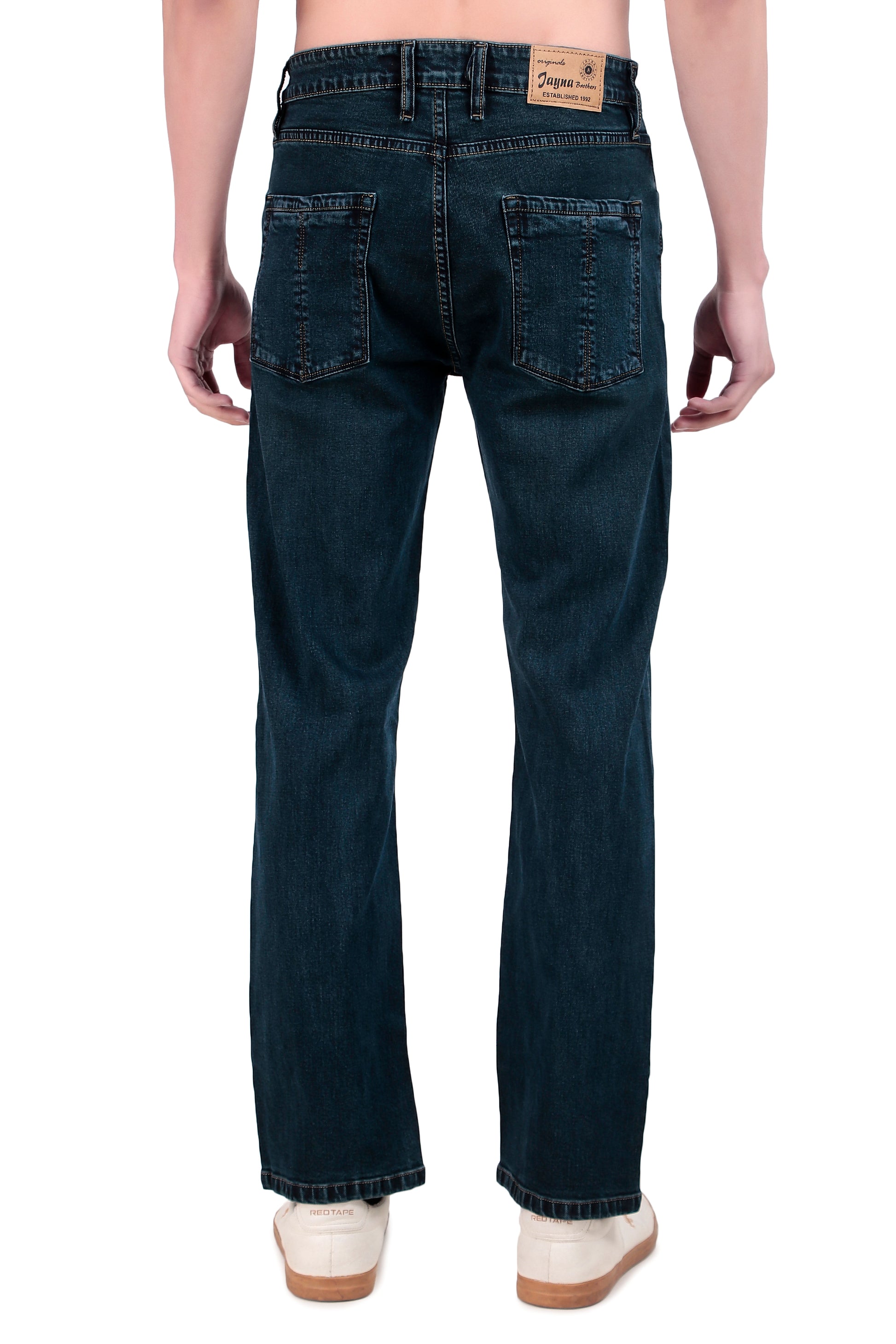 Regular fit ; Mid-Rise ; Regular length ; Zip Fly with buttoned closure; 2 Front & 2 back Pockets ; Solid Pattern.